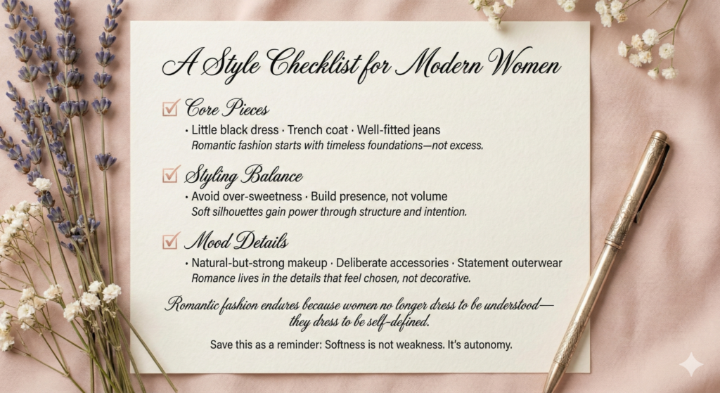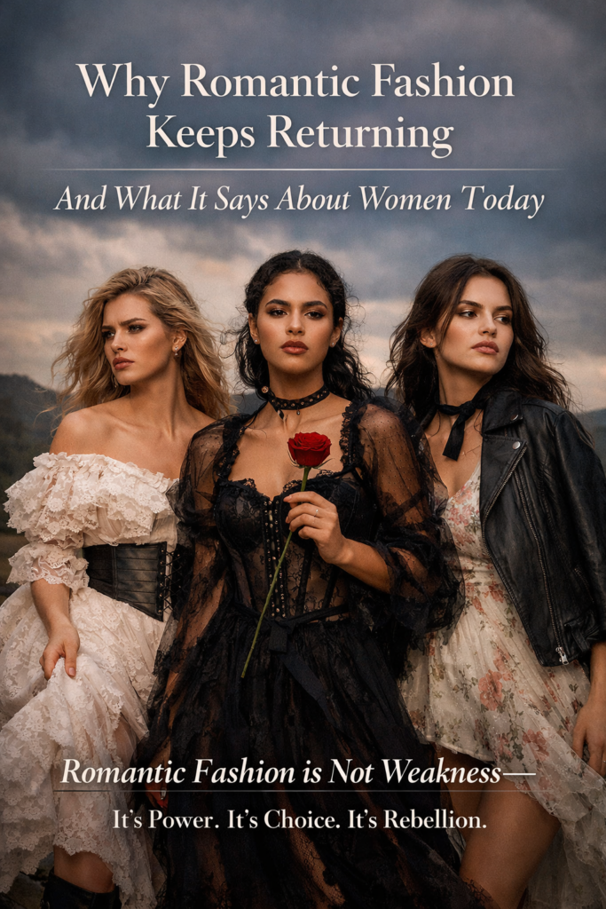 Romantic fashion survives every trend cycle because it adapts to women who refuse to be simplified.